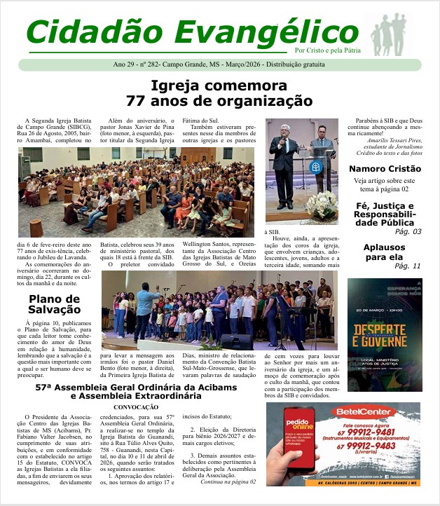Confira na íntegra a Edição Digital de Março/2026, do jornal Cidadão Evangélico. Clique aqui!